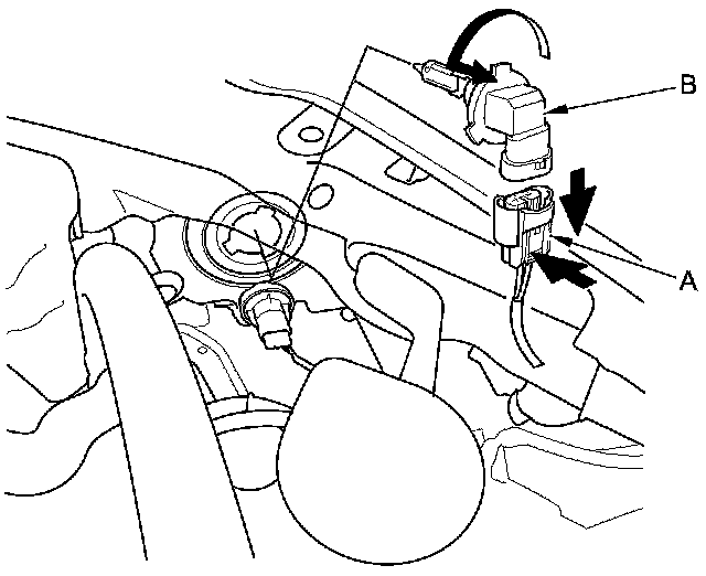 4. Disconnect the 2P connector (A) from the front parking light/front side marker light bulb socket (B).