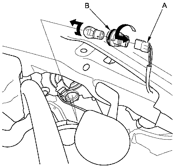 5. Turn the socket (A) 45 ° counterclockwise to remove it from the bulb (B).