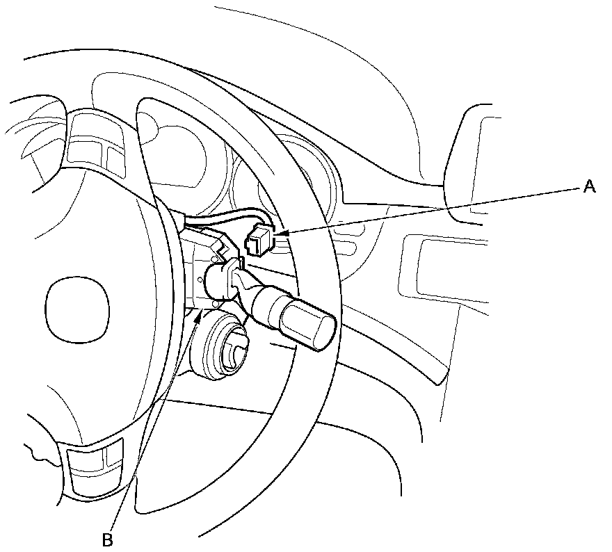 3. Disconnect the combination light switch 12P connector (A) from the wiper/washer switch (B).