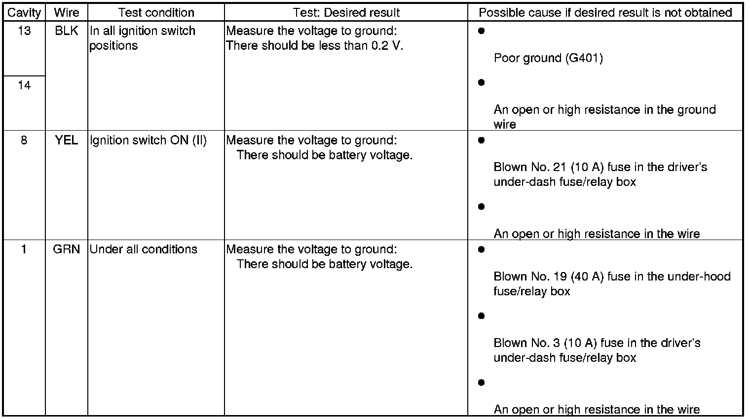 - If the terminals are bent, loose or corroded, repair them as necessary and recheck the system.