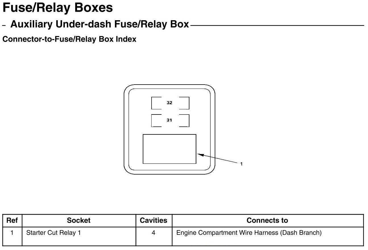 Auxiliary Under-dash Fuse/Relay Box - Connector-to-Fuse/Relay Box Index