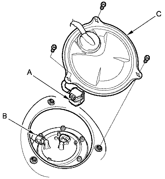 5. Disconnect the quick-connect fitting (C) from the fuel tank unit.