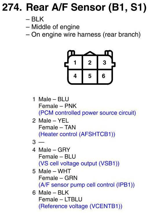 Rear A/F Sensor (B1, S1) Connector View