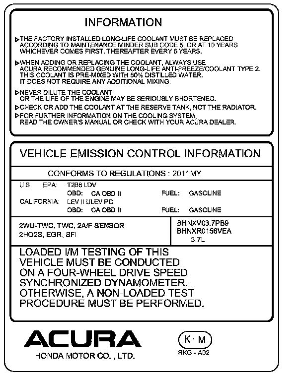 Under-Hood Emission Control Label
