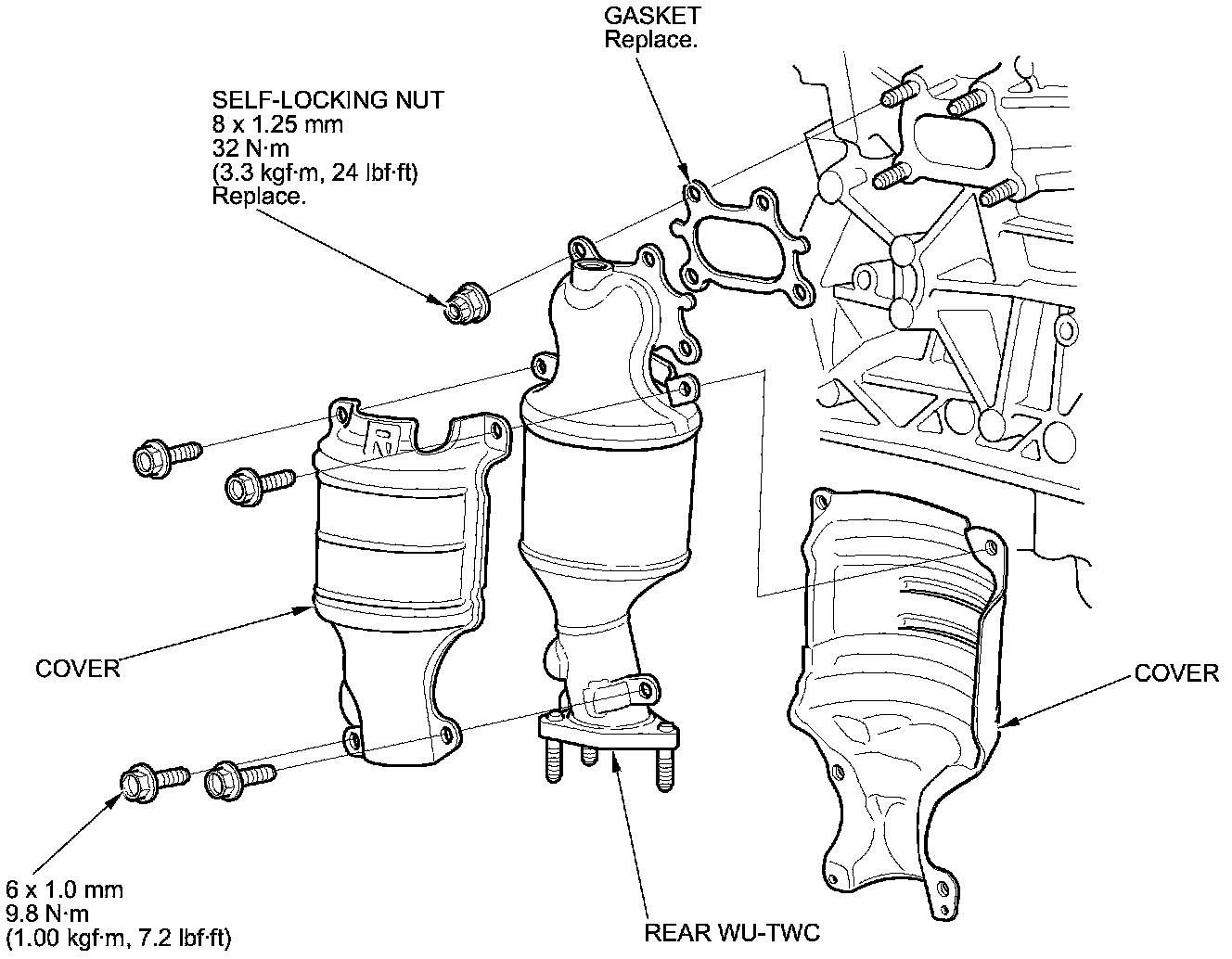 4. Remove the exhaust pipe A mounting nuts (rear WU-TWC side) Service and Repair.