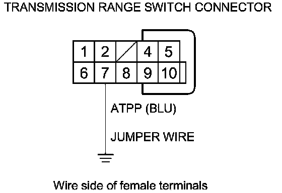25. Connect a jumper wire between transmission range switch connector terminal No. 7 and body ground.