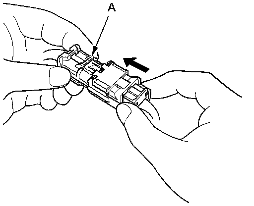 Hold both connector halves, and press them firmly together until the projection (A) of the sleeve-side connector clicks.