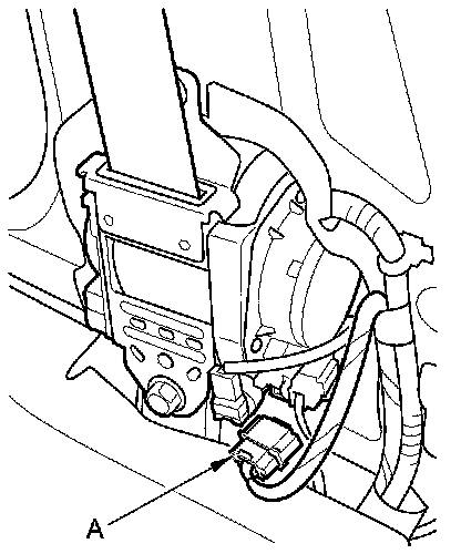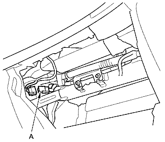 6. Disconnect the front passenger's airbag inflator 4P connector (A) on the dashboard wire harness.