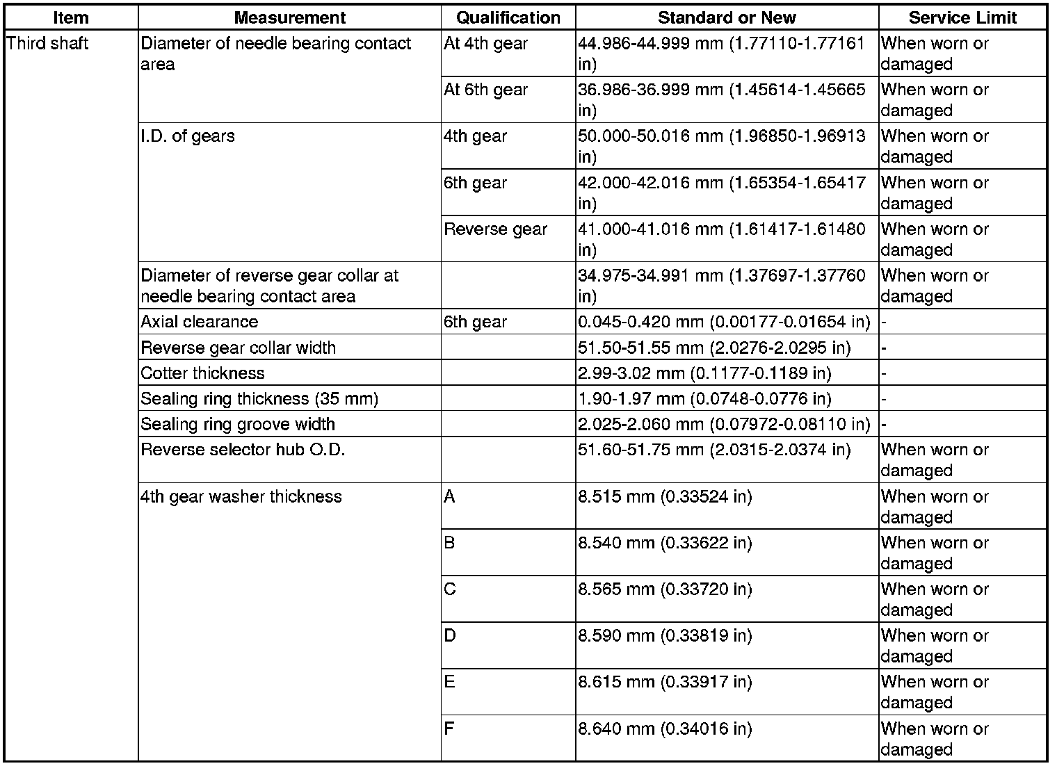 Third Shaft Specification(s)