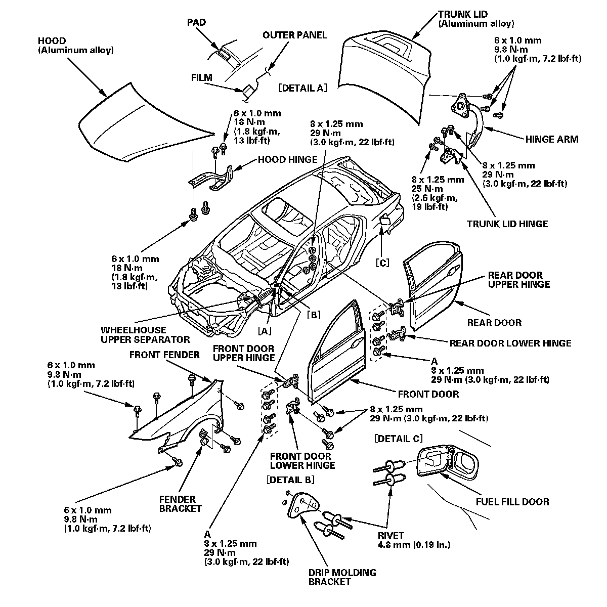 - To adjust the alignment of the hood, the front door, the rear door, and the trunk lid, refer to the appropriate service information.