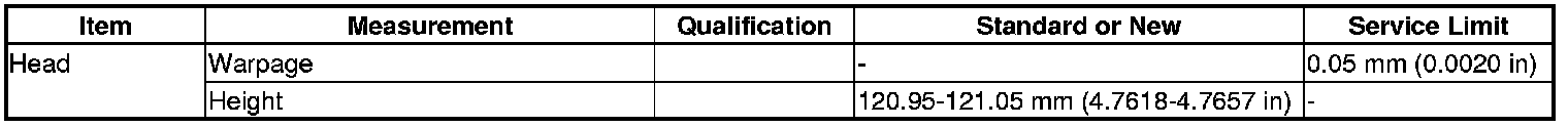 Head Specification(s)