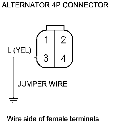 17. Connect alternator 4P connector terminal No. 3 and body ground with a jumper wire.