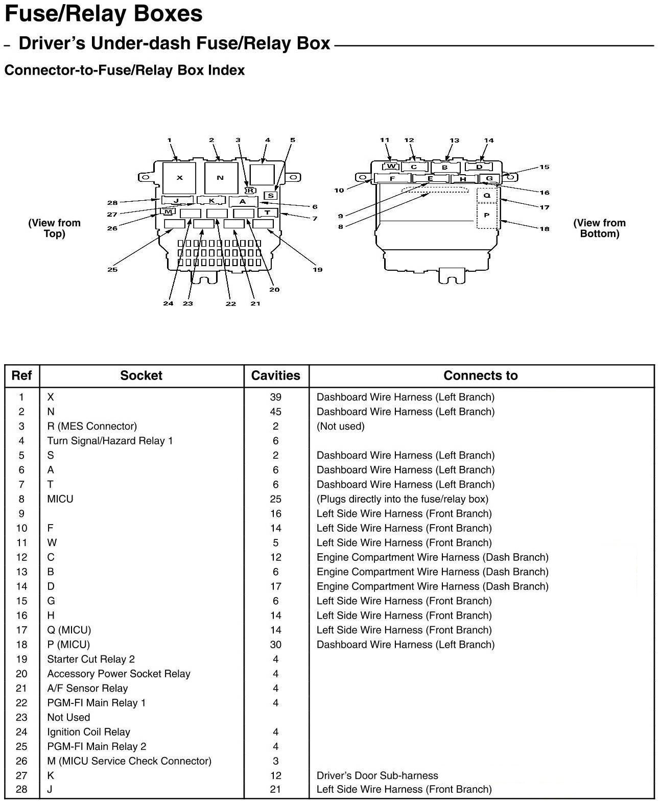 Driver's Under-dash Fuse/Relay Box - Connector-to-Fuse/Relay Box Index