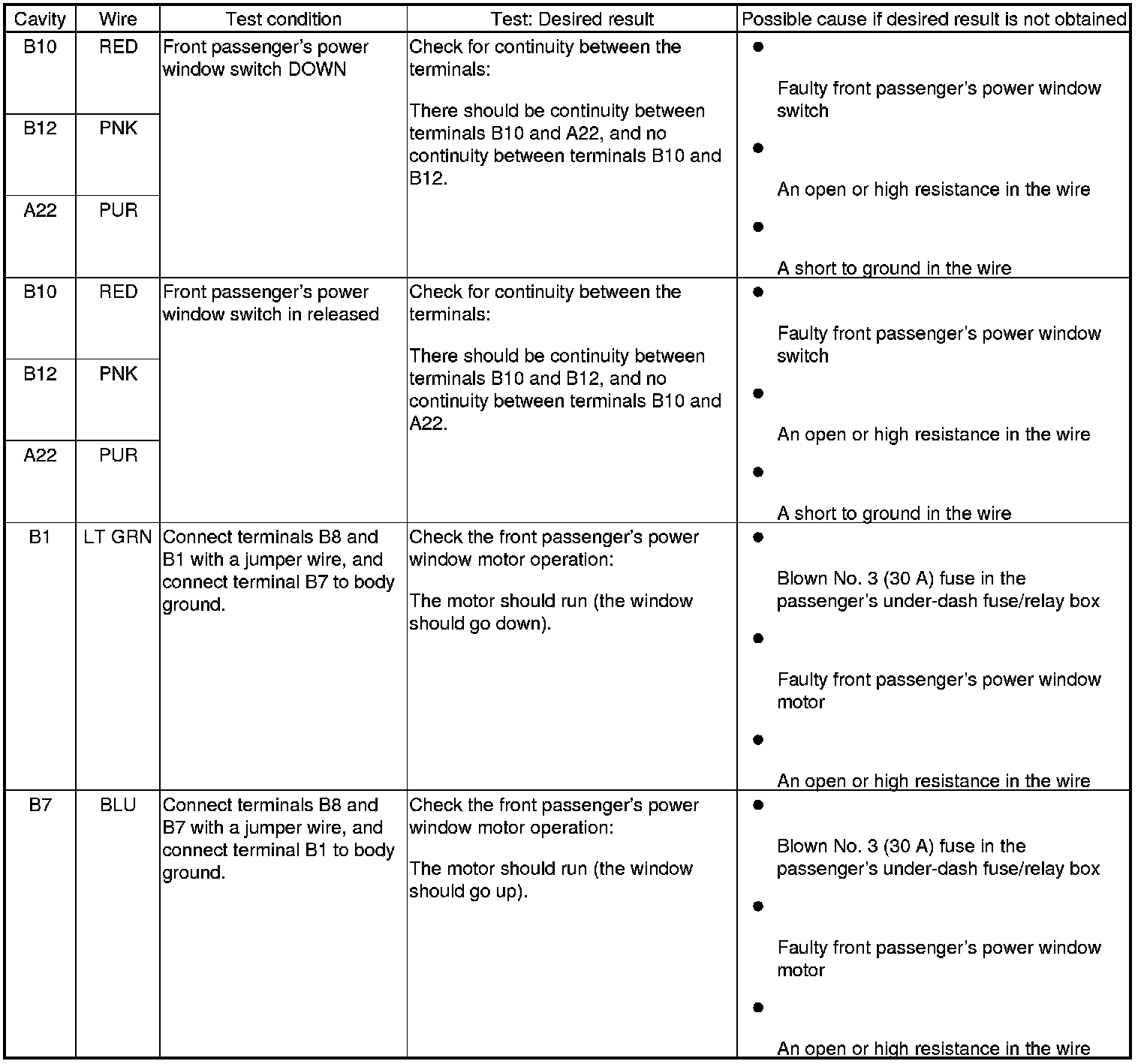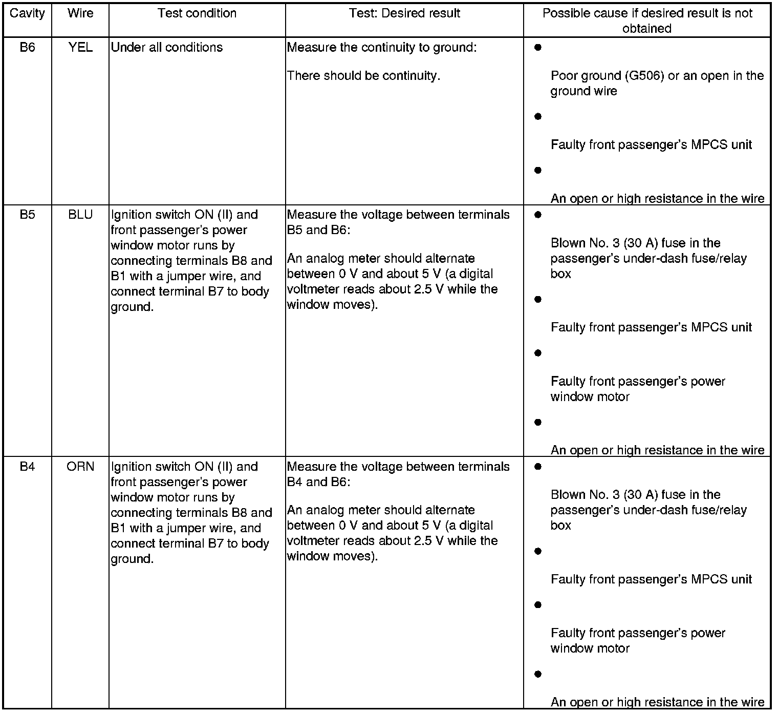 Power Windows (Front Passenger's MPCS Unit) Input Test/Replacement