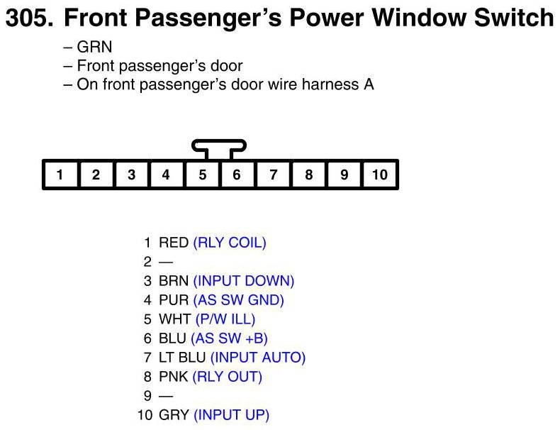 Front Passenger's Power Window Switch Connector View
