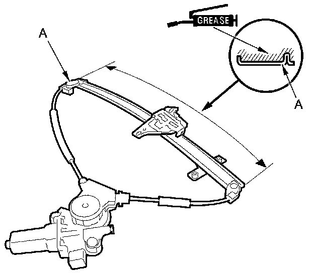 5. Apply multipurpose grease to the sliding surfaces of the regulator (A) where shown.