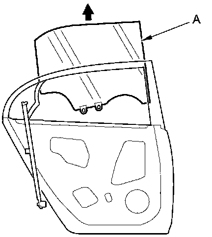 7. Carefully remove the glass (A) through the window slot. Take care not to drop the glass inside the door.