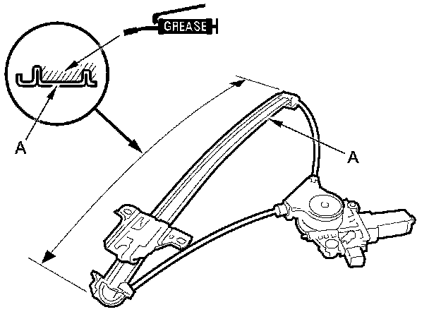 10. Apply multipurpose grease to the sliding surfaces of the regulator (A) where shown.