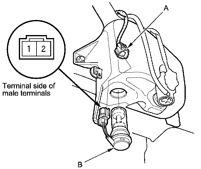 2. Disconnect the 2P connector (A) from the washer fluid level switch (B).