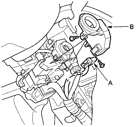 2. Disconnect the 7P connector (A) from the immobilizer-keyless control unit (B).