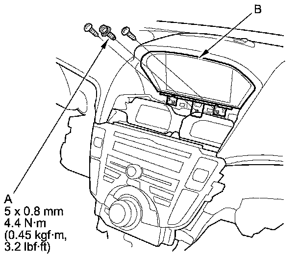 2. Remove the screws and bolt (A) from the navigation display unit (B).