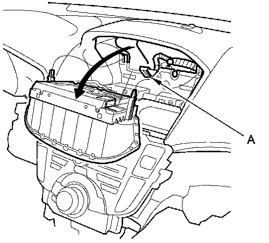 3. Pull out the navigation display unit. Then disconnect the connector (A) from the navigation display unit.