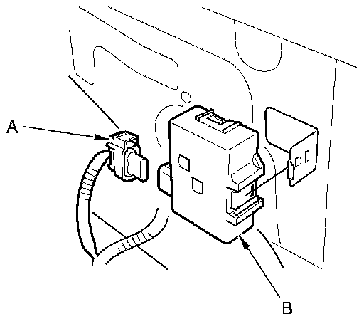 2. Disconnect the 2P connector (A) from the keyless buzzer (B).