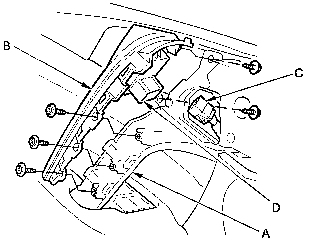 3. Pull out the grip cover slightly from the door grip, then disconnect the 13P connector (C) from the power mirror switch (D).