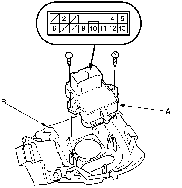 4. Remove the two screws and the power mirror switch (A) from the grip trim (B).