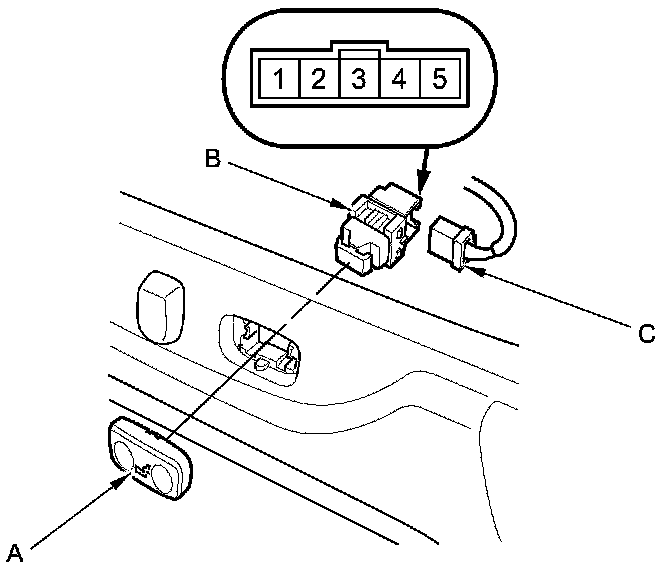 2. Disconnect the 5P connector (C) from the switch.