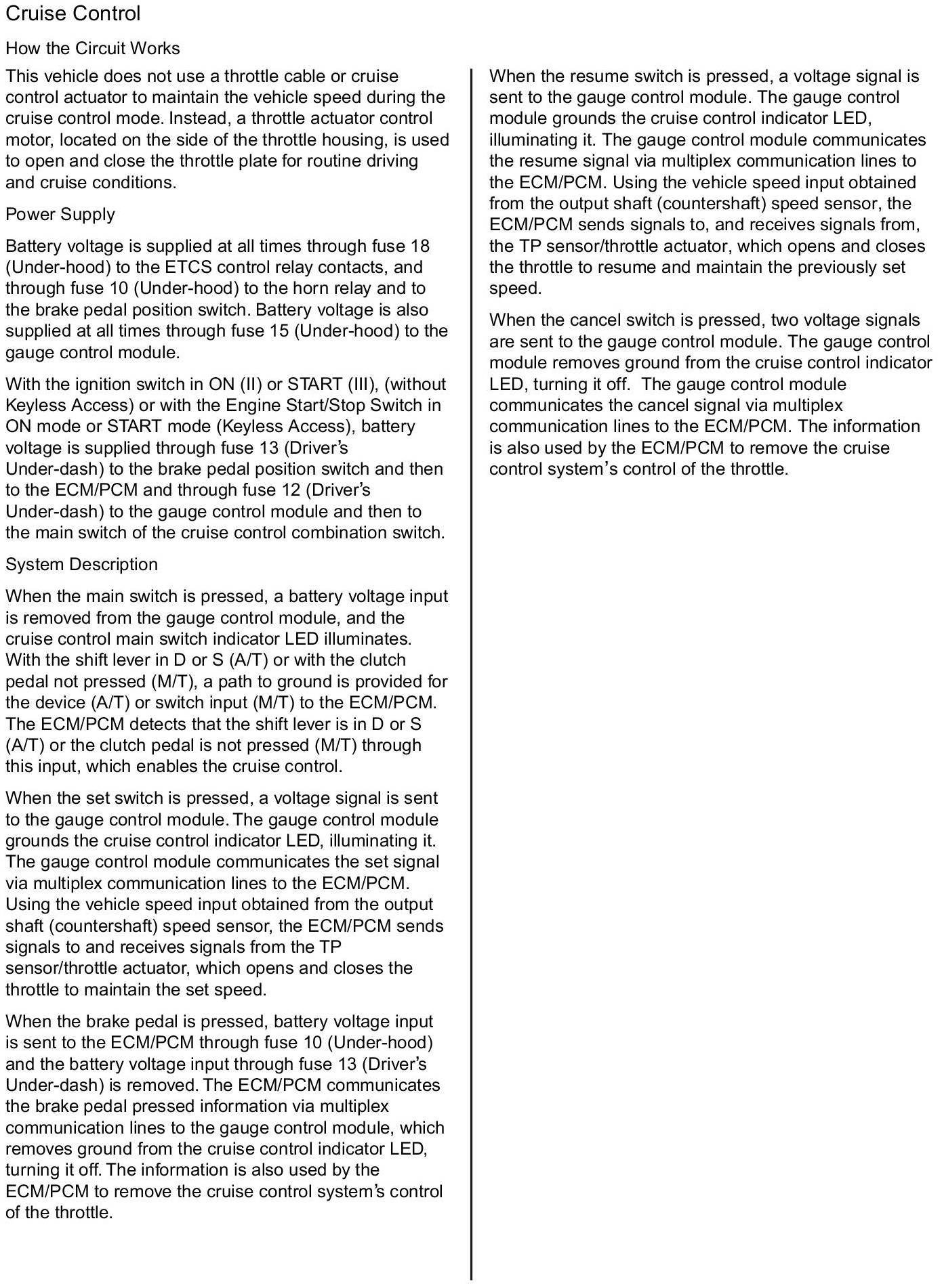 Cruise Control: Description and Operation