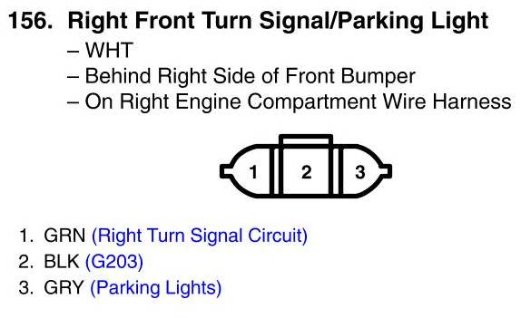 View 156 - Right Front Turn Signal/Parking Light Connector View