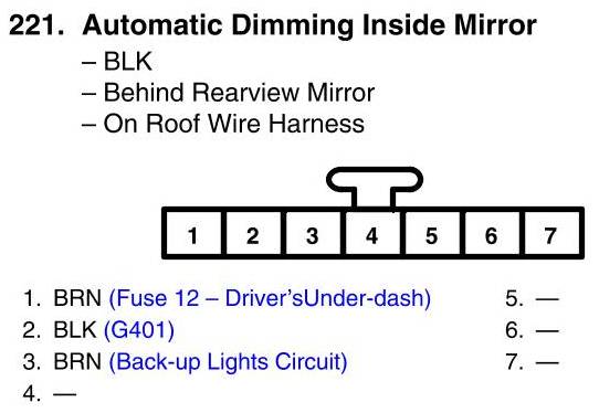 View 221 - Automatic Dimming Inside Mirror Connector View