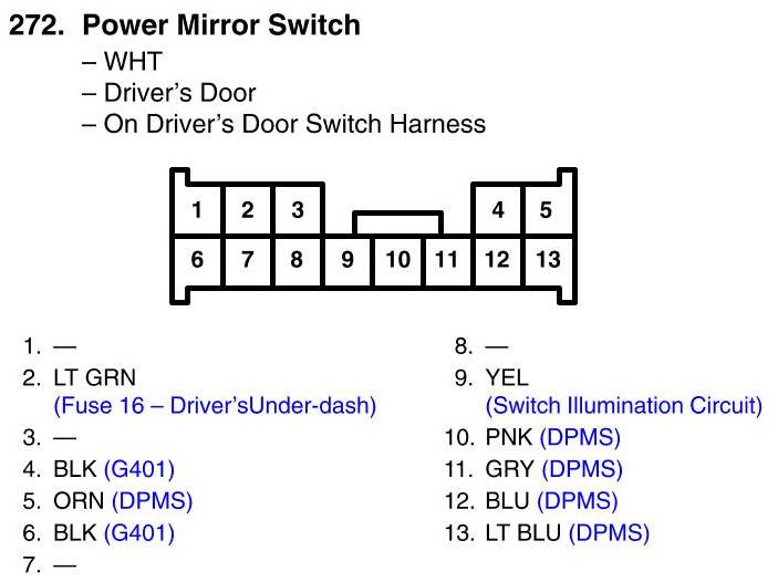 View 272 - Power Mirror Switch Connector View