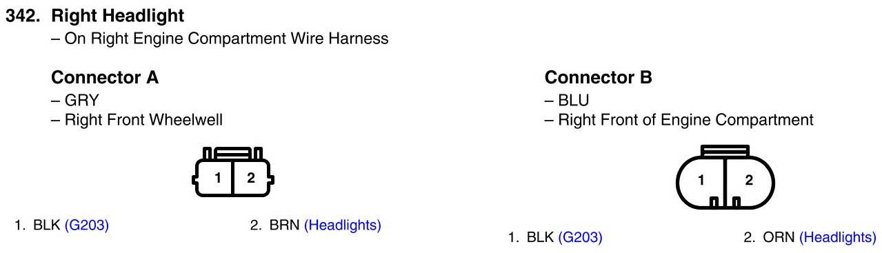 View 342 - Right Headlight Connector View