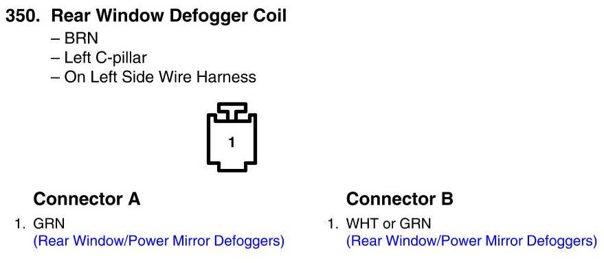 View 350 - Rear Window Defogger Coil Connector View