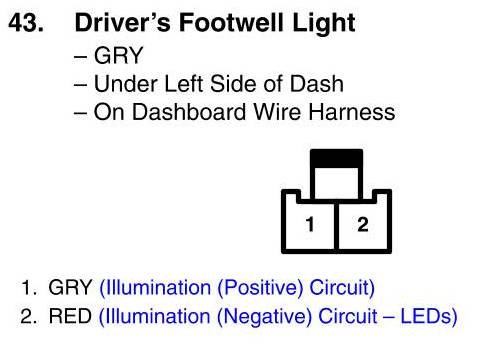 View 43 - Driver's Footwell Light Connector View