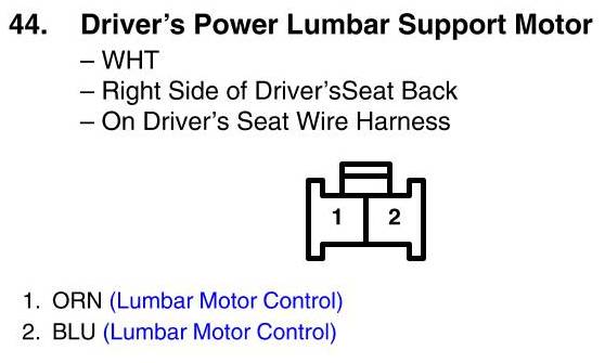 View 44 - Driver's Power Lumbar Support Motor Connector View