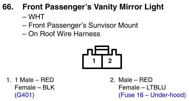 View 66 - Front Passenger's Vanity Mirror Light Connector View
