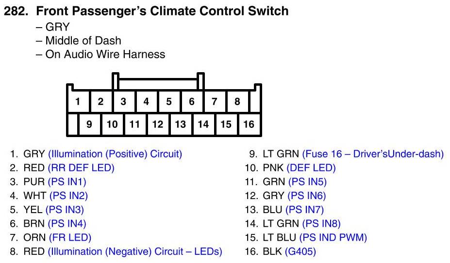 Front Passenger's Climate Control Switch Connector View