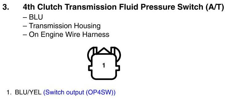4th Clutch Transmission Fluid Pressure Switch Connector View