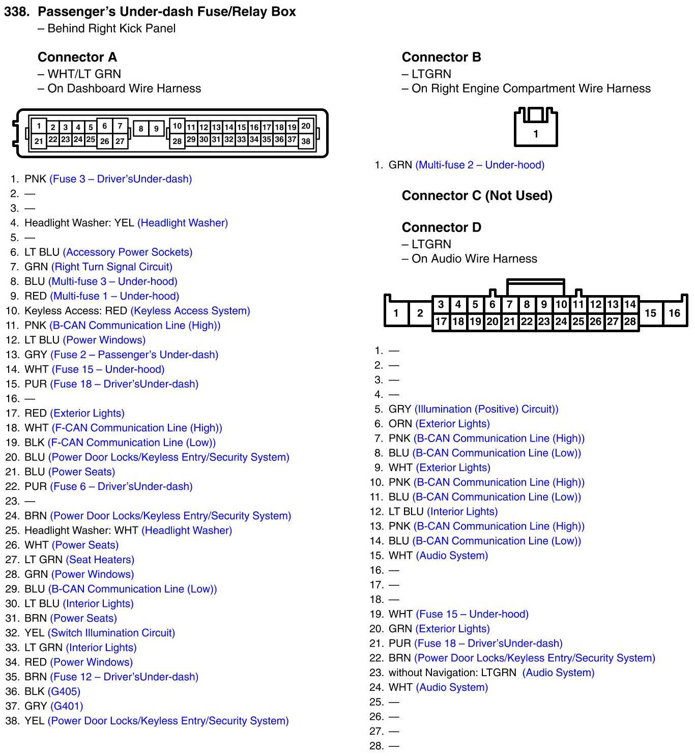 Passenger's Under-Dash Fuse/Relay Box Connector View