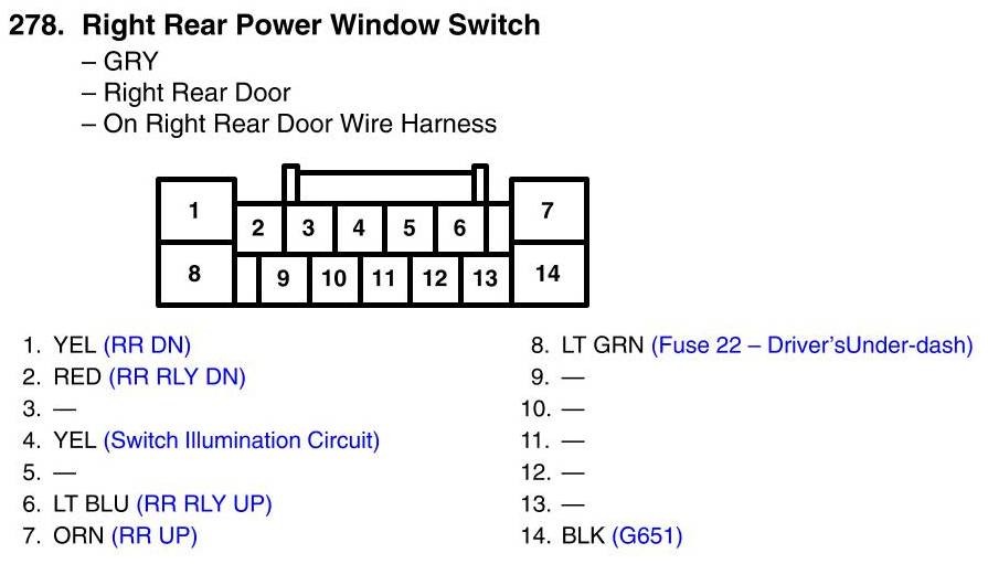 Right Rear Power Window Switch Connector View