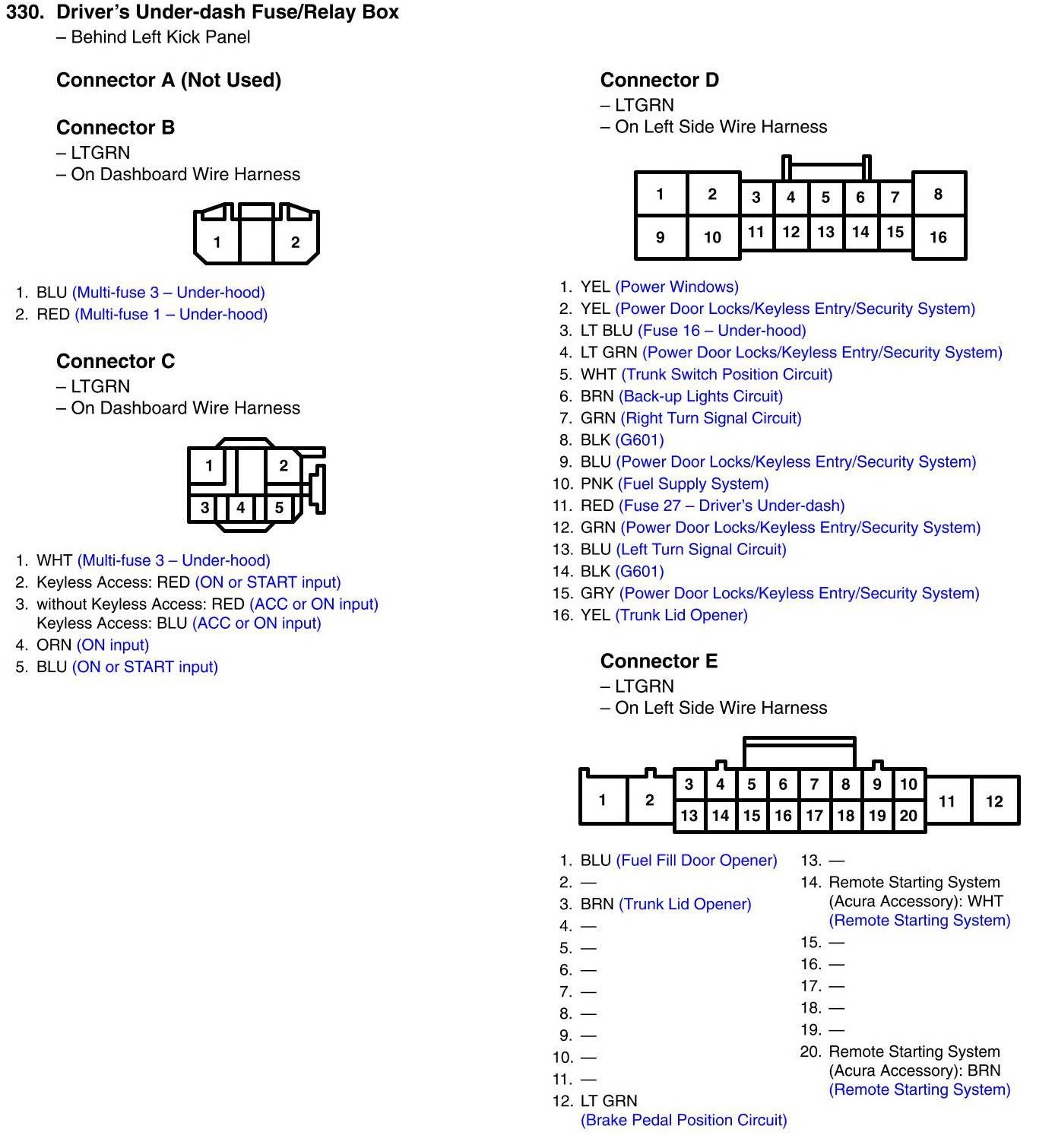 Driver's Under-dash Fuse/Relay Box Connector View