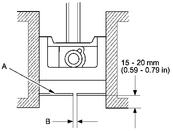 4. Using a piston, push a new ring (A) into the cylinder bore 15-20 mm (0.59-0.79 in) from the bottom.