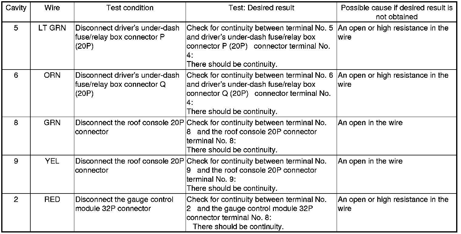 6. Reconnect the connector to the rear individual map light, and do the following input tests:
