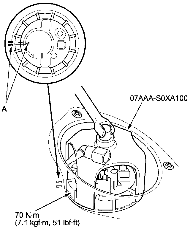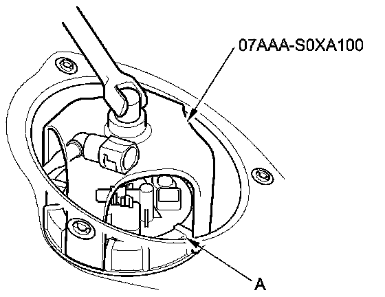 2. Transfer the base gasket (A) from the fuel tank unit to the fuel tank.