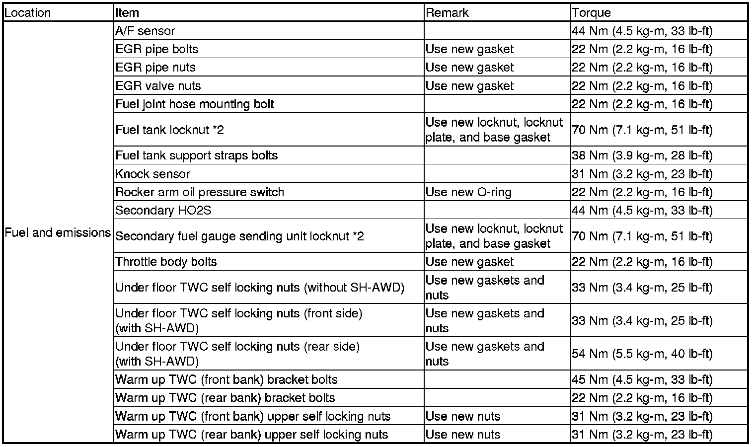 *2: Follow the procedures closely for torque, sequence, and special steps.