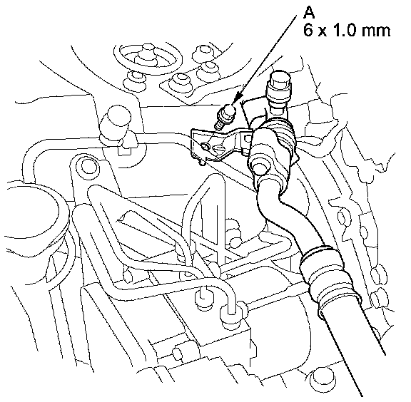 3. Remove the suction line mounting bolt (A) from the bracket.