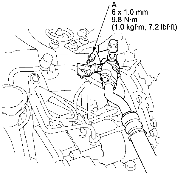 6. Install the suction line mounting bolt (A) to the bracket.